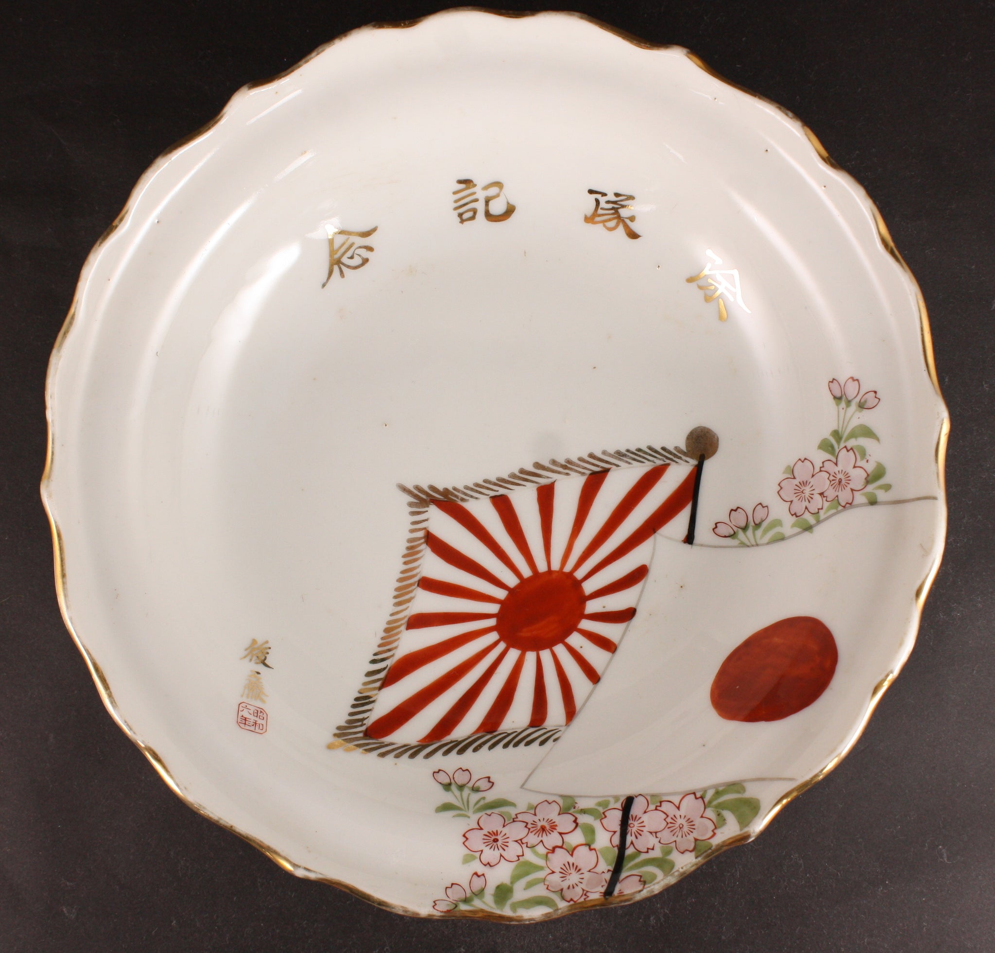 Antique Japanese Military 1931 Flags Discharge Blossoms Dish