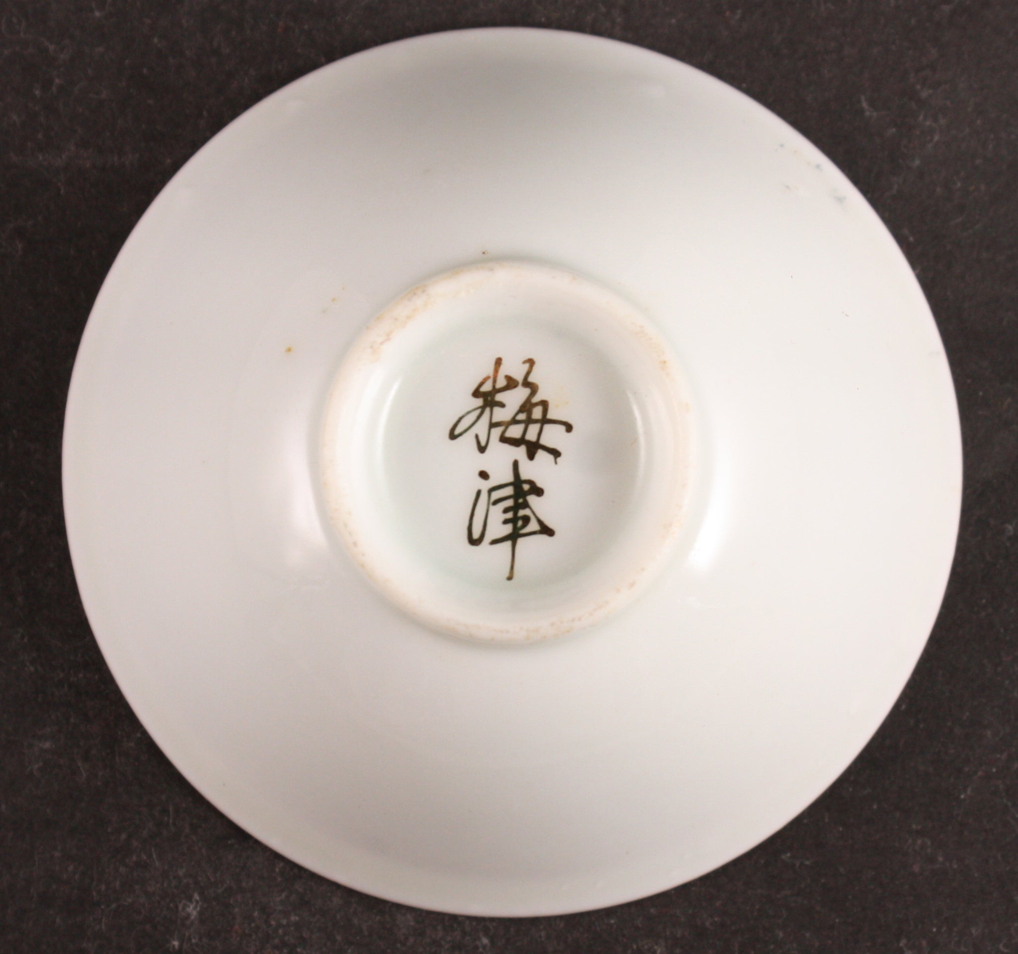 This is an antique Japanese military sake cup, decorated with a chrysanthemum, an insignia of the Imperial Guards, and the words "Commemoration" "2nd Guards Infantry". The soldier's name Umezu is on the back.