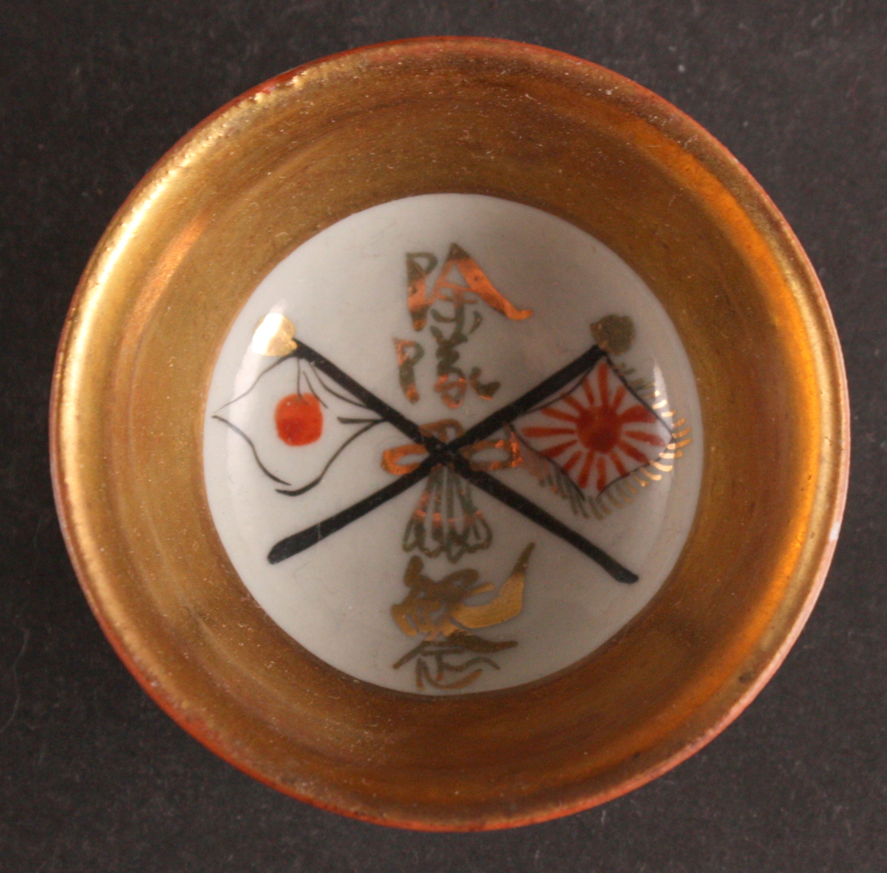Antique Japanese Military Kutani Flags Army Sake Cup