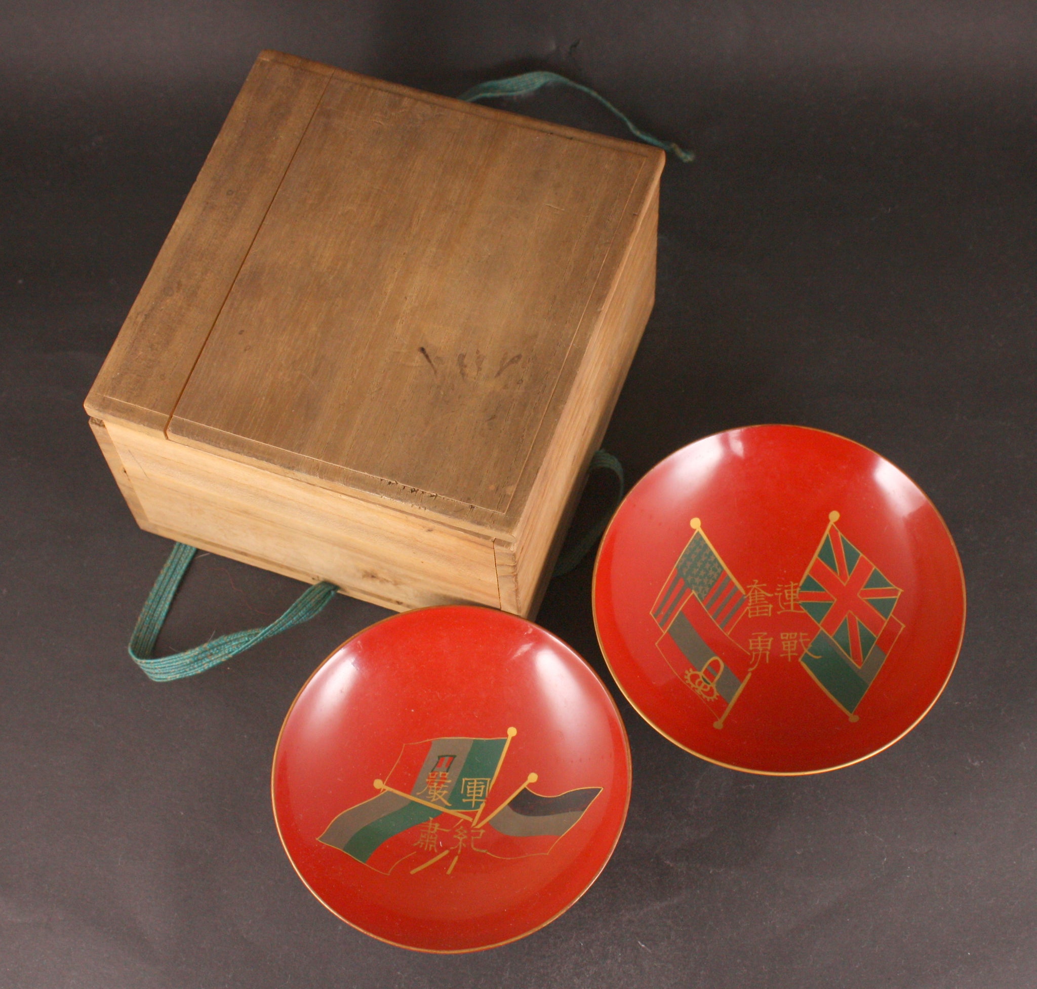 Very Rare Antique Japanese Military 1900 Boxer Rebellion Eight Nations Lacquer Sake Cups
