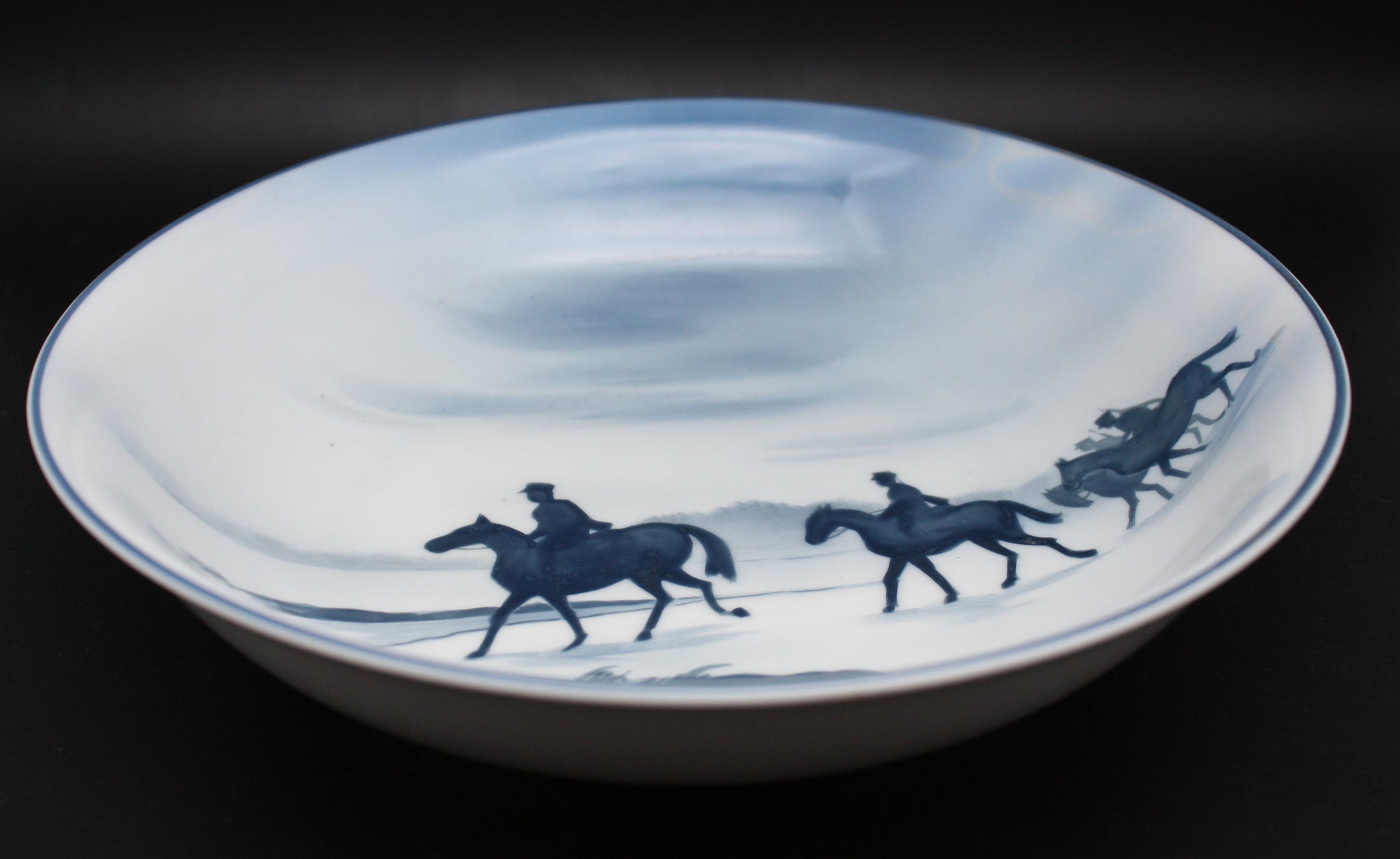 This is an antique Japanese military themed dish/bowl, decorated with a stunning image of a some cavalry looking to cross a stream. The words on the back are "Showa 6th Year (1931) 3rd Division Autumn Wargames Commemoration" and the name of the maker Noritake. The 3rd Division seems to like these very nicely decorated dishes and makes one every year for their annual wargames. Noritake is still in business today as a maker of premium dinnerware.