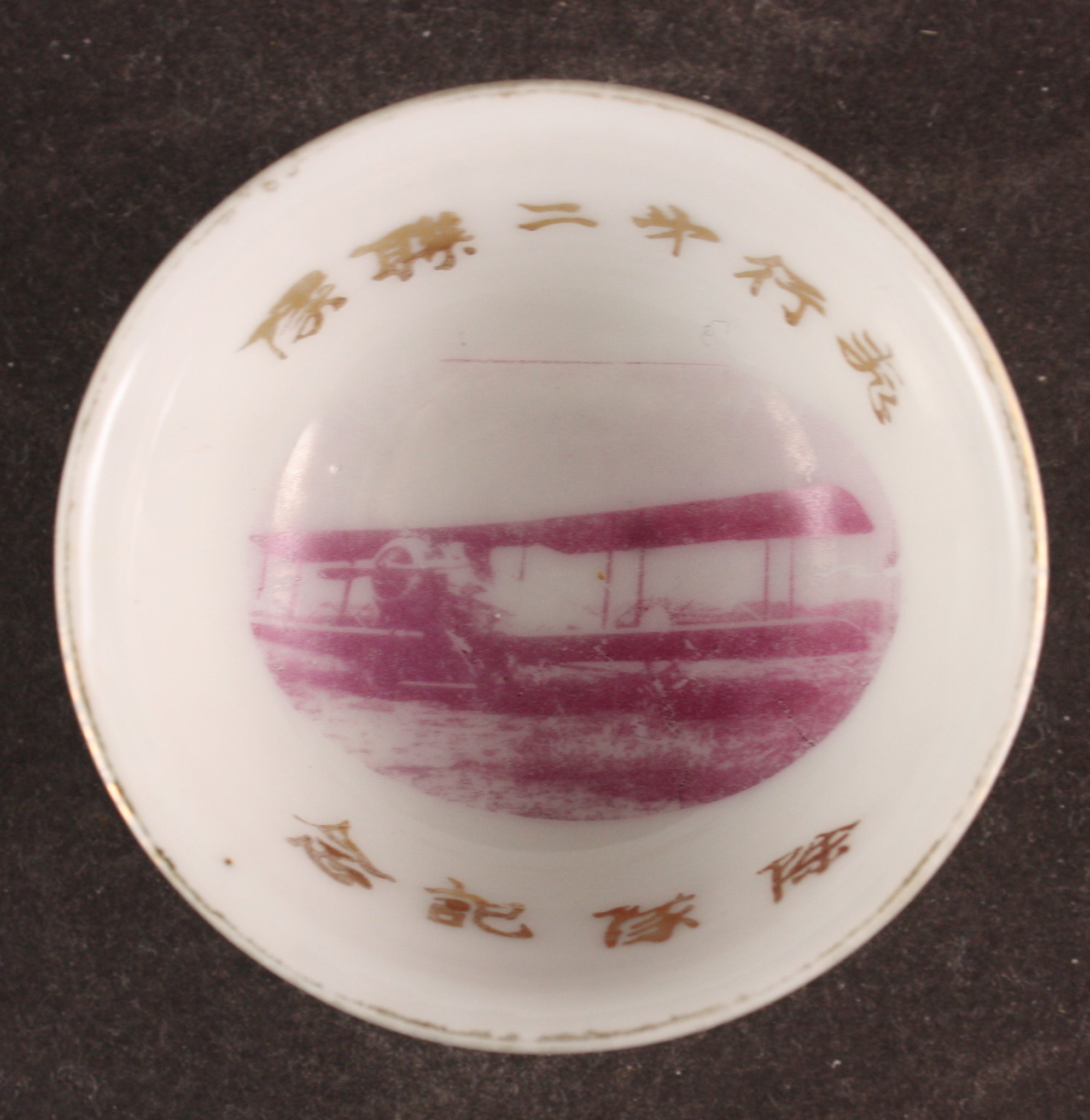 Very Rare Antique Japanese Military Photo Transfer Biplane Army Sake Cup
